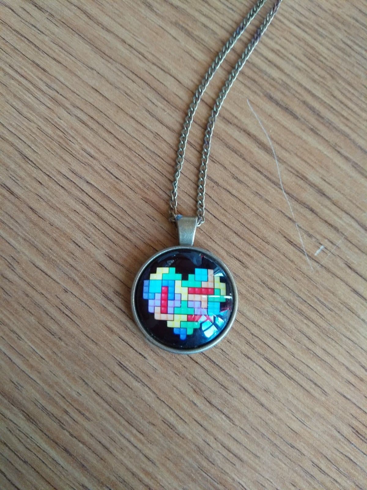 Si tu novia es una amante de los videojuegos clásicos, tienes que darle este collar en forma de corazón con cuadritos de Tetrix. Lo más romántico del mundo.