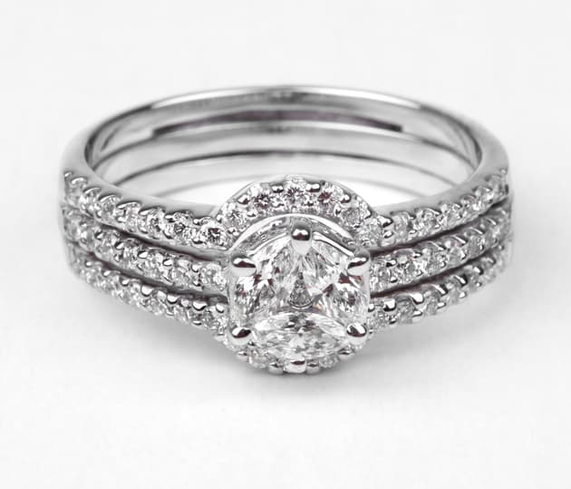 Si no piensas dejar de usar tu hermoso anillo de compromiso luego de casarte, las alianzas deben estar acordes al mismo en cuanto a materiales y diseño. Ninguno de los dos debe tapar al otro ni eclipsarlo.