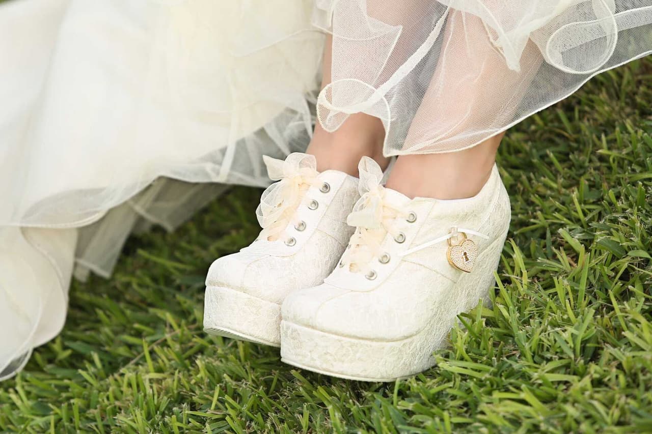Lleva tres pares de zapatos a tu boda: Tacones altos, zapatos de cuña y unos flats. Para la boda usa los tacones, para las fotos los de cuña y para bailar… ya sabes cuáles.