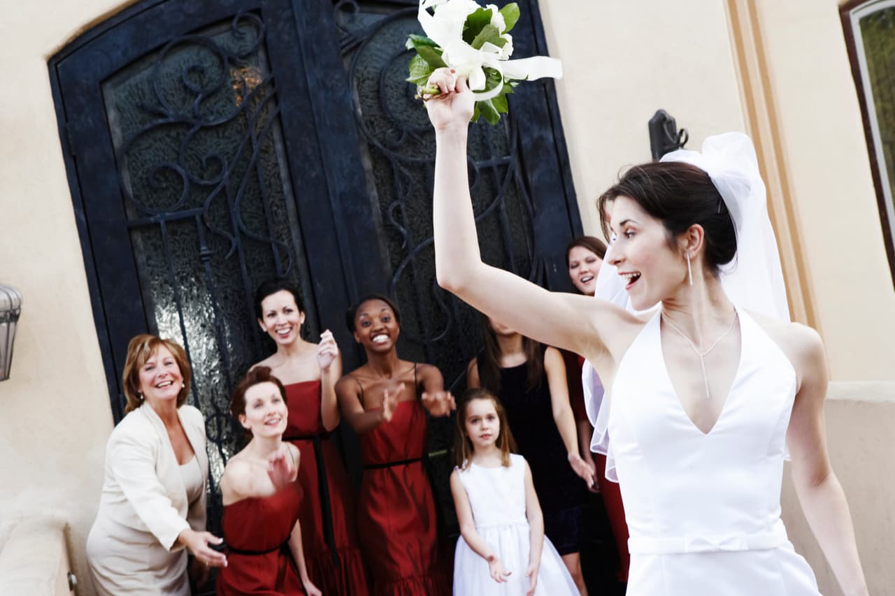 Lanzar el ramo es otra costumbre muy utilizada en las bodas. Se lanza entre las amigas y familiares que estén solteras y la que lo atrapa es la próxima en casarse.