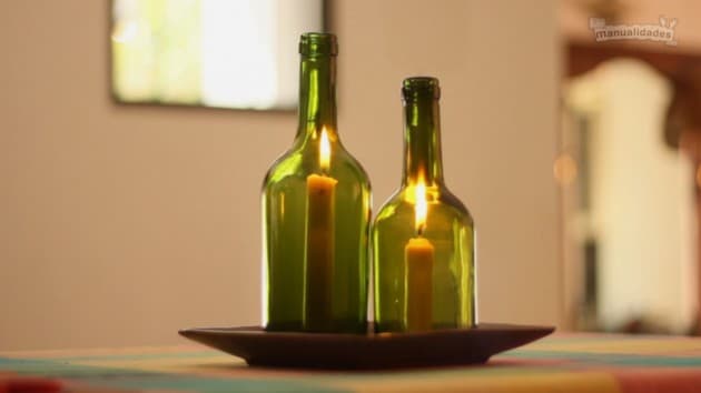 La última opción es usar botellas de color oscuro, marrón o verde, y colocar una vela dentro. ¡Hermosos!