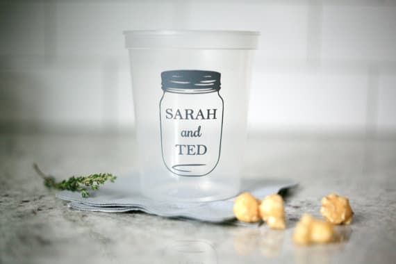 Puedes regalarle a tus invitados unos vasos de plástico personalizados para que recuerden siempre tu boda y disfruten de un diseño divertido.