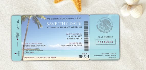 ¿Será un boleto? ¿Será una invitación? Seguro la boda será perfecta como un viaje a la playa.