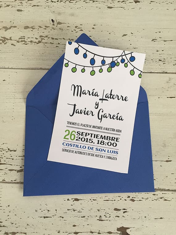 Si decoras tu boda con azul y verde, ¡decora también tu tarjeta así!