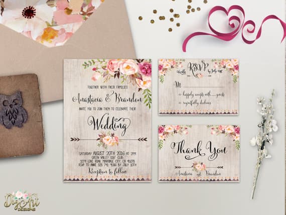 Las flores y lo vintage son un must para invitaciones de bodas.