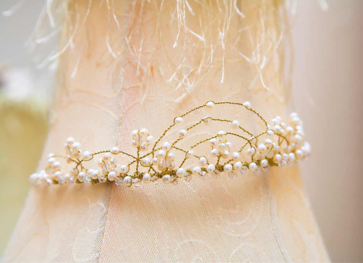 Las diademas para bodas con perlas son ideales para aquellas mujeres que tengan un vestido de aire romántico o barroco, o un color de vestido que no sea blanco sino más bien blanco roto, grisáceo, champagne u otro diferente.
