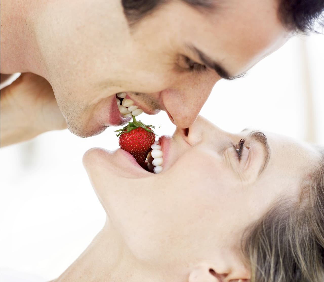 Agarra una manzana o cualquier otra fruta que disfruten comer. Colócala en tu boca y has que tu pareja tome un bocado sin usar sus manos.