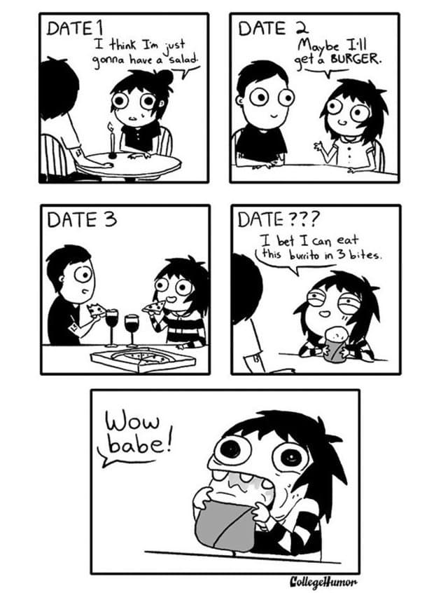 #2 En la primera cita nos cuidamos con la comida pero con el paso del tiempo ¡disfrutamos cada plato!