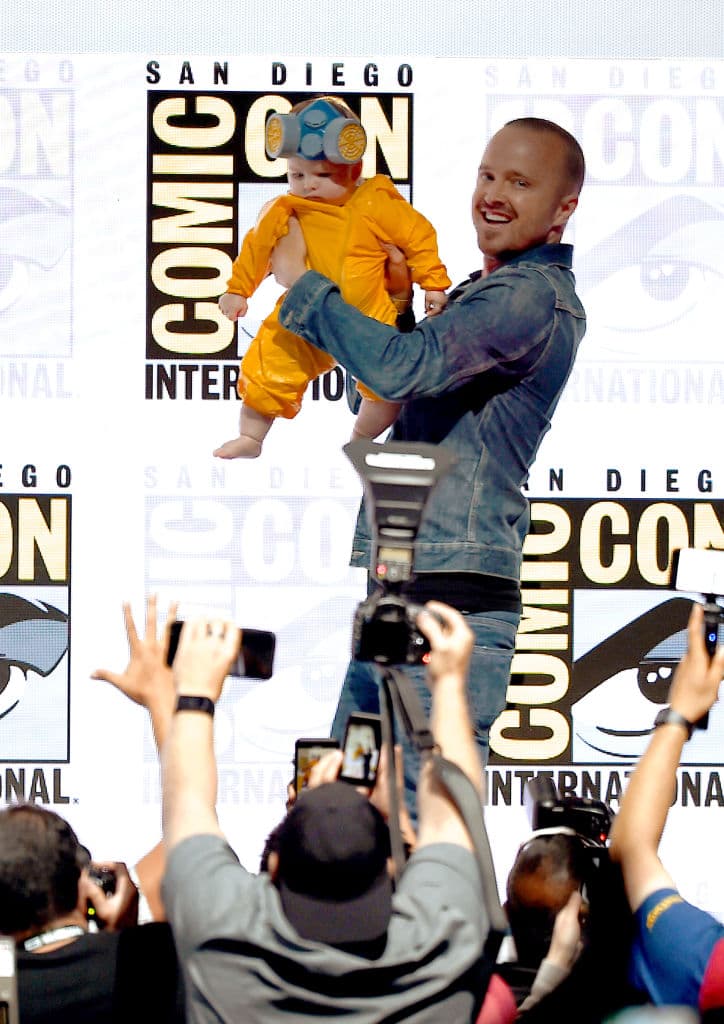 En el Comic-Con de 2018, Aaron Paul asistió con sus compañeros de elenco y con una integrante muy importante de su familia: Annabelle Paul, de 5 meses. Y lo hizo de una forma espectacular: vestida como Jesse durante sus tiempos de cocción.