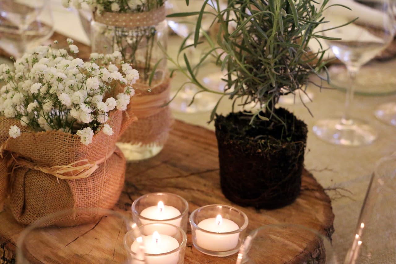 Las bodas rústicas son una tendencia muy solicitada y original. En este caso la decoración es sencilla y muy acogedora.