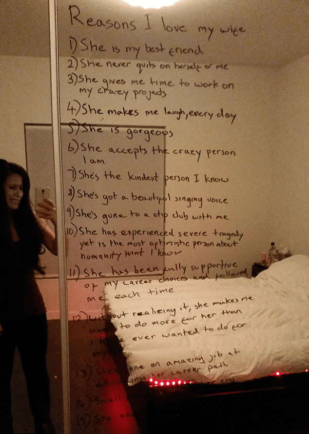Lo que hizo fue hacer una lista de todas las cosas que ama de su mujer: