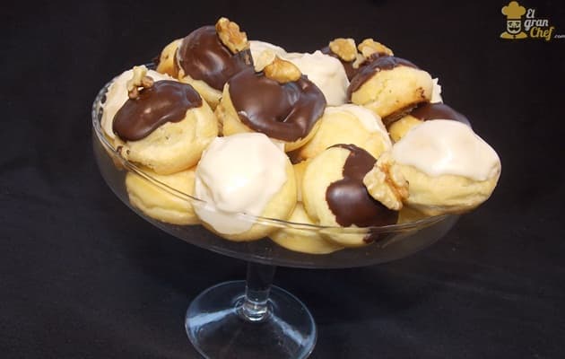 El primer paso es cocinar la masa sin los huevos, que se incorporan posteriormente una vez que la mezcla se ha enfriado. Esta masa se utiliza para formar pequeños montoncitos que, tras ser barnizados con huevo, se hornean hasta dorarse.