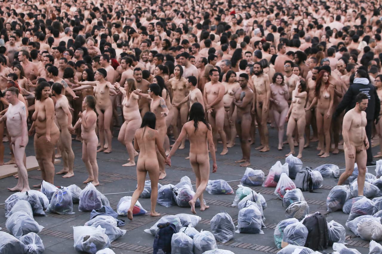 Entonces las prendas quedaron a un lado empacadas en bolsas plásticas y las personas quedaron nada más que con sus cuerpos, expuestos ante la cámara análoga de Spencer Tunick, fotógrafo estadounidense que se ha dado a conocer por retratar multitudes de personas desnudas "en disposición artística".