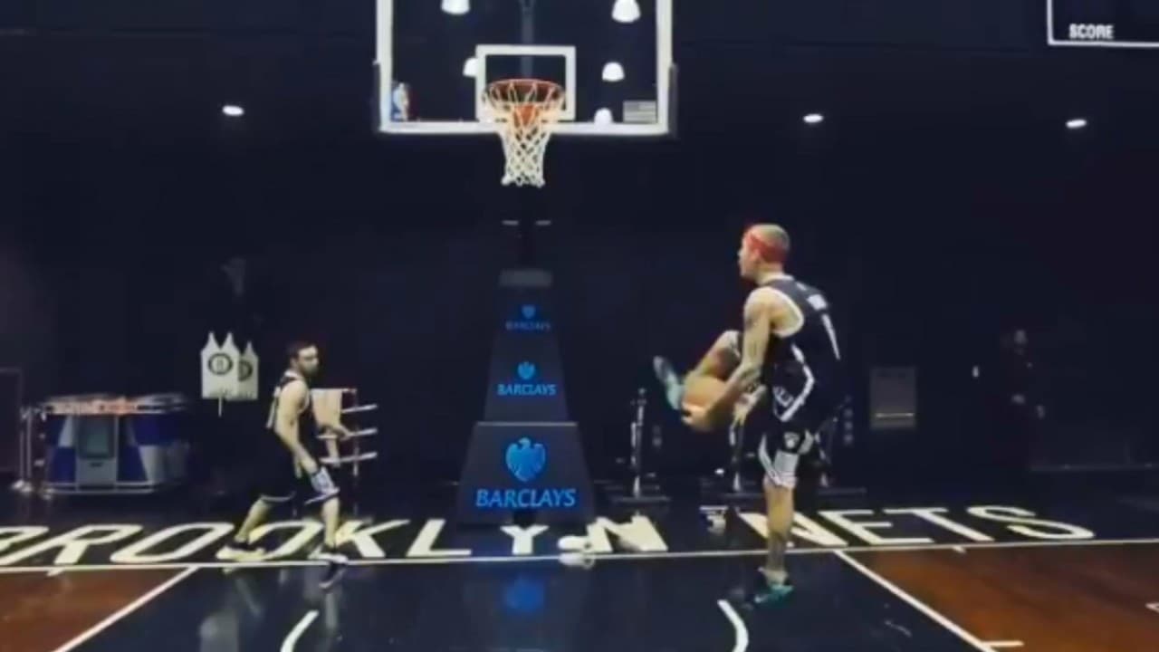 El cantante canadiense muestra sus habilidades en el baloncesto.