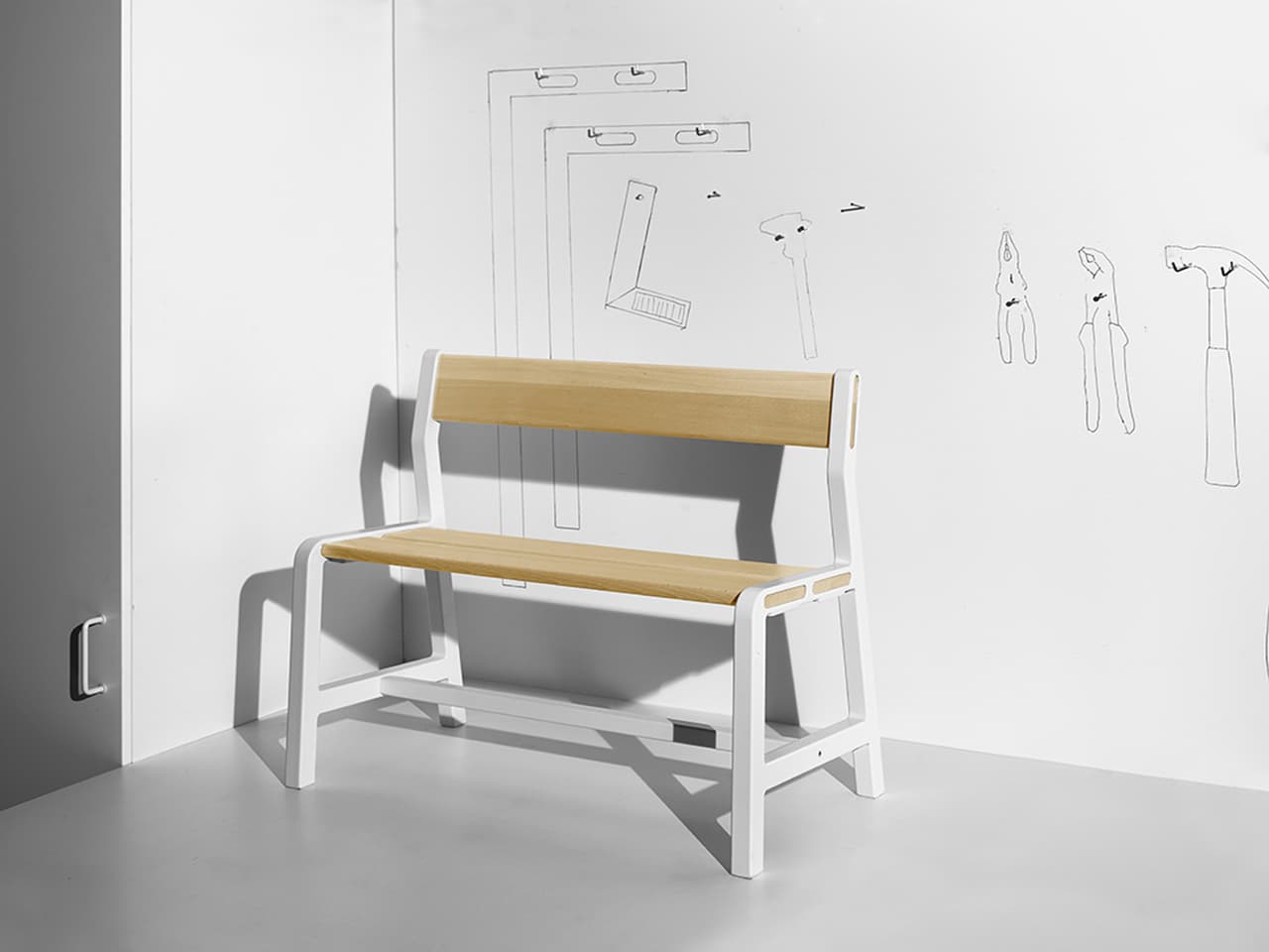 La colección incluye, además, una lámpara, una silla, una mesa y una banca, creadas pensando en función de las necesidades funcionales y emocionales de una casa del siglo XXI, y producidas utilizando nuevos textiles, mezclando materiales de manera innovadora y recurriendo a nuevas técnicas de manufactura.