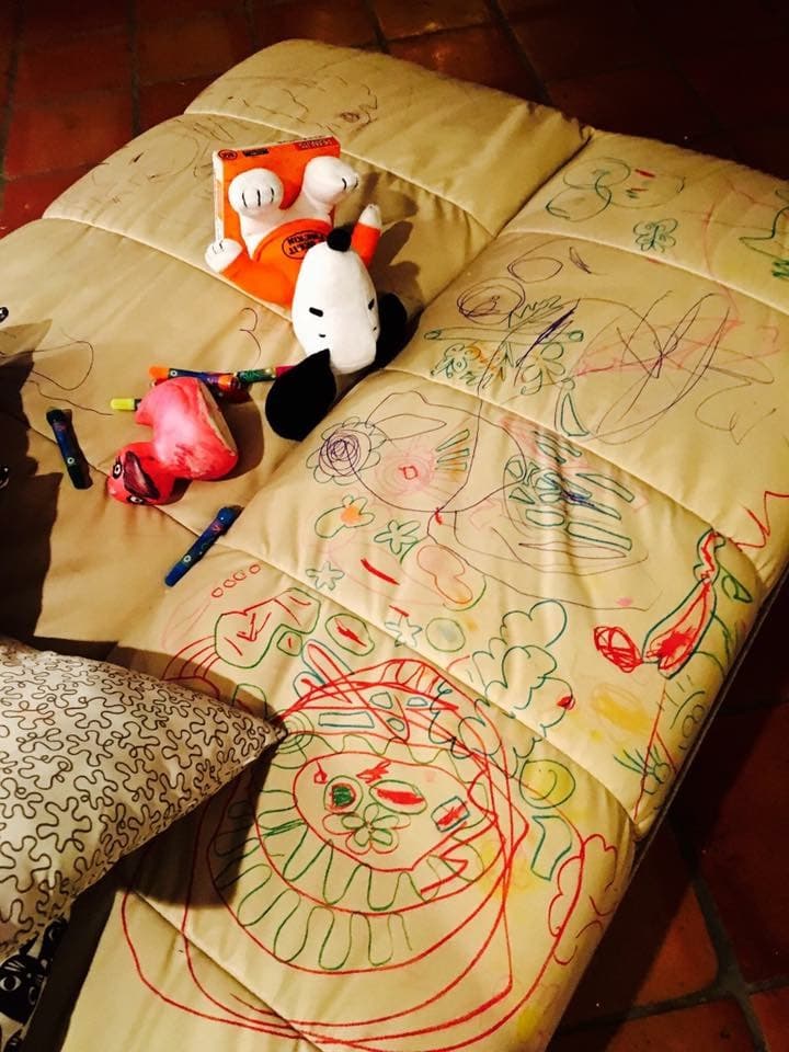 Si tu hija se hace famosa por pintar en el sofá, ayúdale a terminarlo