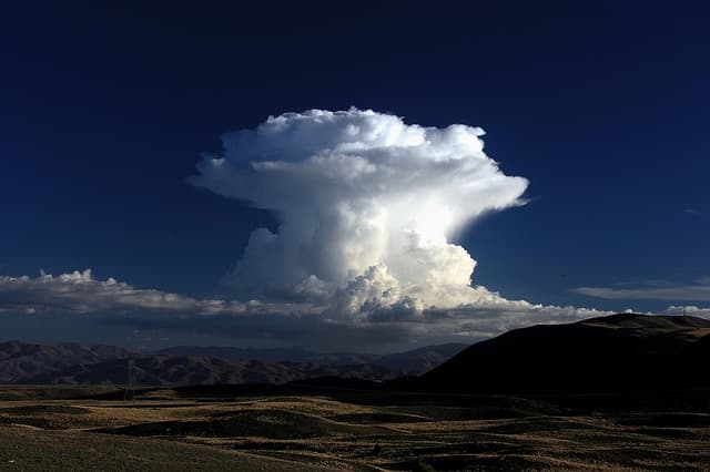 Lo primero en lo que se piensa es en una explosión nuclear al ver esta clase de nubes. Se forman cuando una gran cantidad de gases de baja densidad, cerca del suelo, sube rápidamente hacia la atmósfera y cuando llegan a cierta altura empiezan a caer formando el hongo.