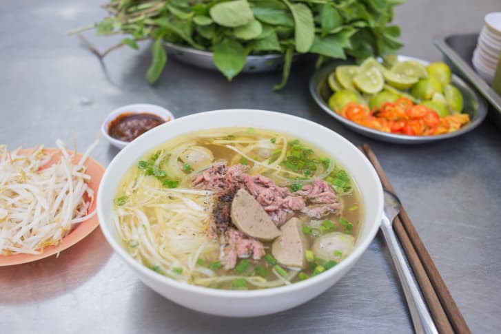 El plato más popular de Vietnam es el Pho, que se pronuncia fa, y es una especie de sopa de fideos que se sirve con carne y hierbas como albahaca. ¡Delicioso!