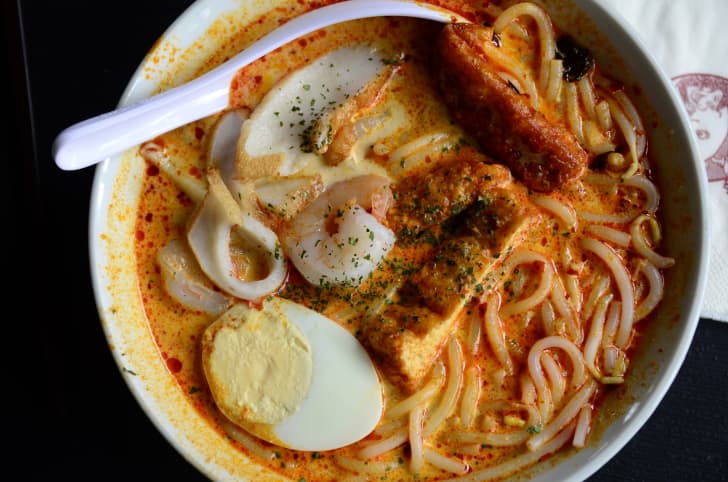 Otra sopa de fideos súper típica de Asia. Este plato popular de Malasia tiene ingredientes interesantes y que combinan muy bien como caldo de coco, limón, menta vietnamita y galangal, que es una especie de jengibre fresco.