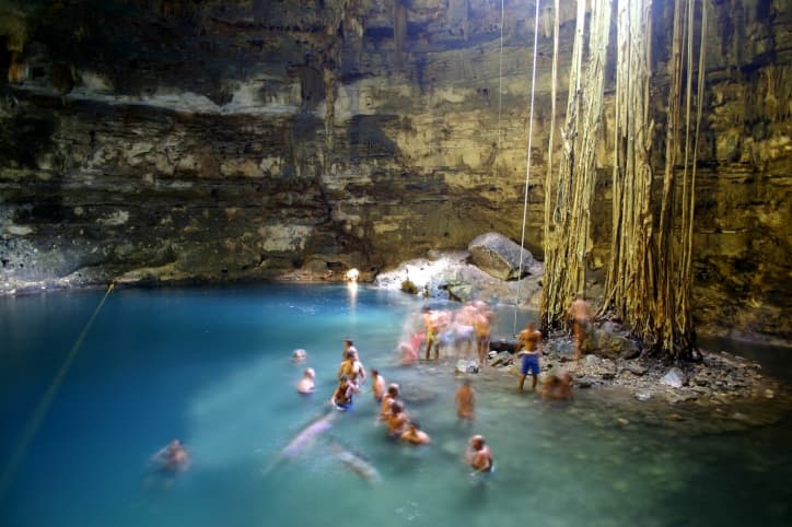 Es una depresión en forma circular que se forma por el hundimiento de una caverna y luego se inunda. Hay cenotes jóvenes en gruta o subterráneos, también los hay semiabiertos, y los más viejos y más visitados son aquellos a cielo abierto. ¡Increíbles!