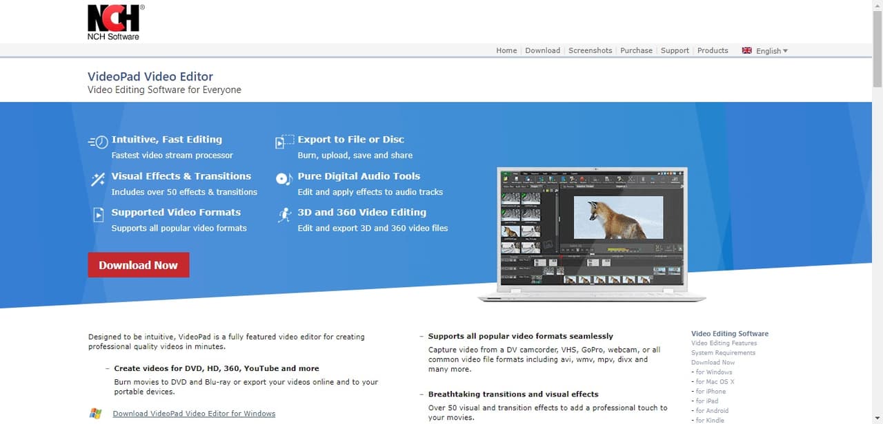 VideoPad Video Editor Professional permite ir viendo tus resultados en tiempo real y, una vez que estés satisfecho, exportar tu grabación lista en el formato que quieras. Además, también sirve para cambiar entre formatos y con el podrás editar videos 3D y en 360°.
