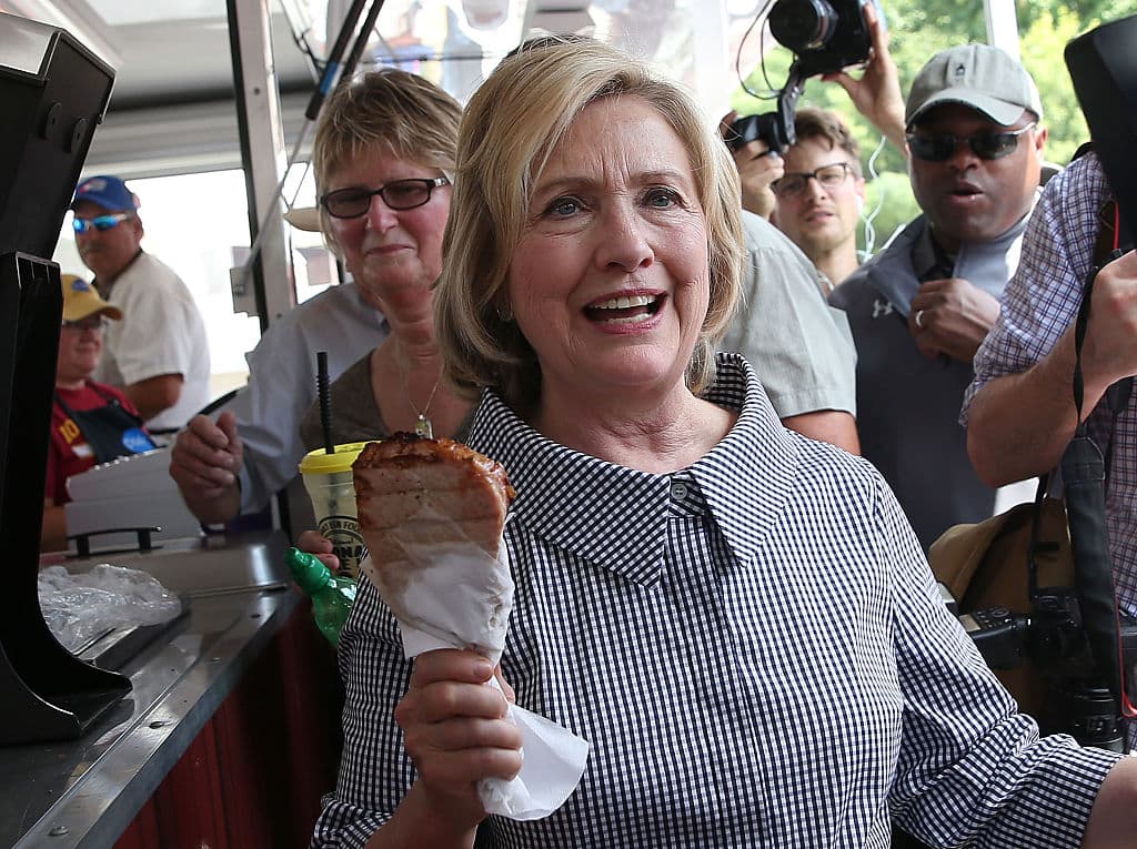 Hillary aprovechó y se comió su chuleta, como debe ser, en el Iowa State Fair, el evento al que los candidatos van tradicionalmente a buscar votos en ese estado.