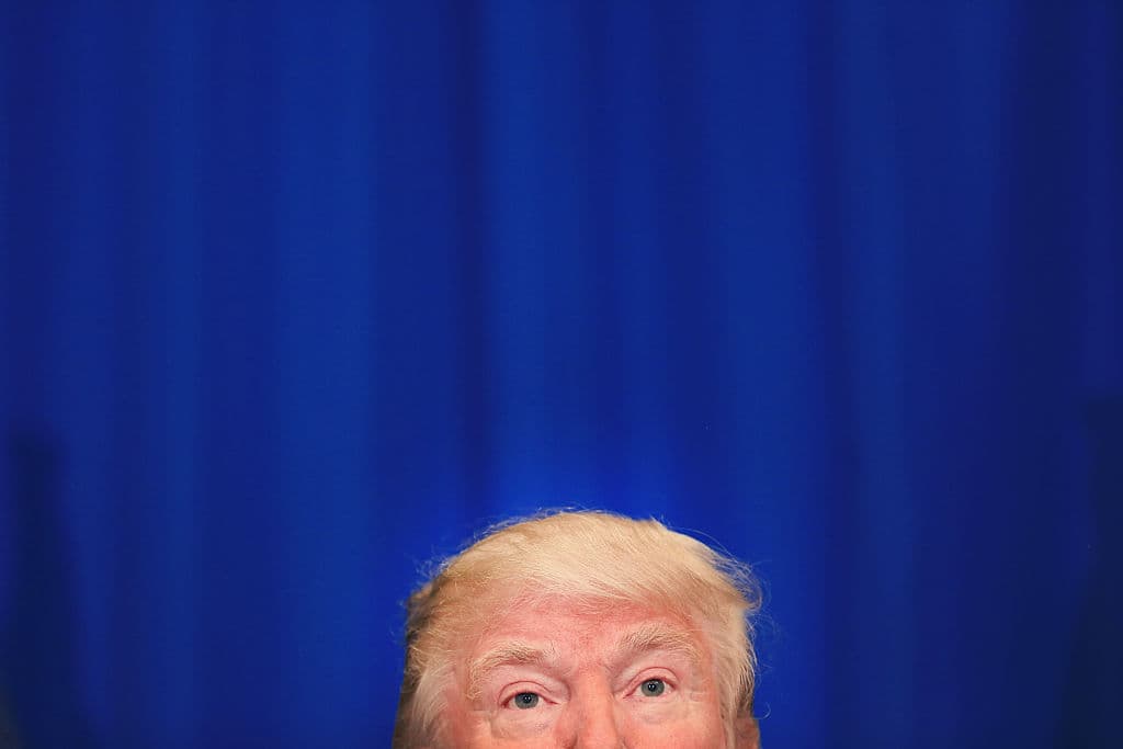 Un fotógrafo, seguramente aburrido, le tomó está divertida foto a Trump y su cabellera en Fort Worth, Texas.