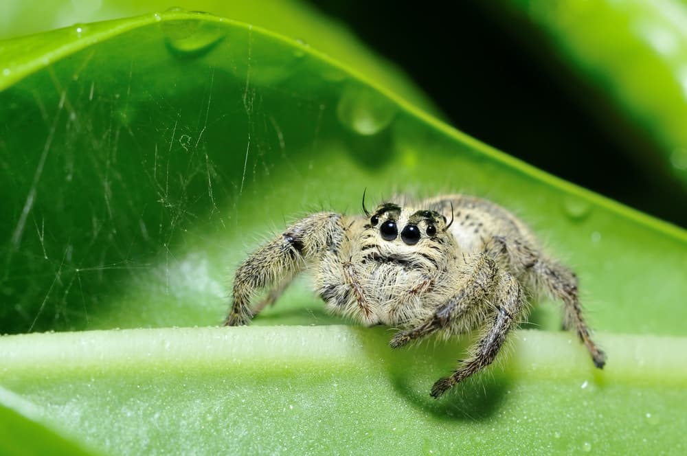 Las arañas saltadoras suelen verse muy tiernas de cerca. Sin embargo, para alimentarse suelen acechar a otras presas más pequeñas, dentro de su ecosistema.
