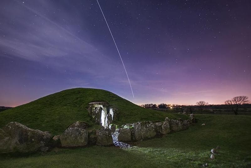 Newgrange, en las llanas praderas del Condado de Meath, en Irlanda, data del 3200 a. E. C., habiéndose construido en el período Neolítico. Es un pasaje funerario y el yacimiento arqueológico más popular de Irlanda.