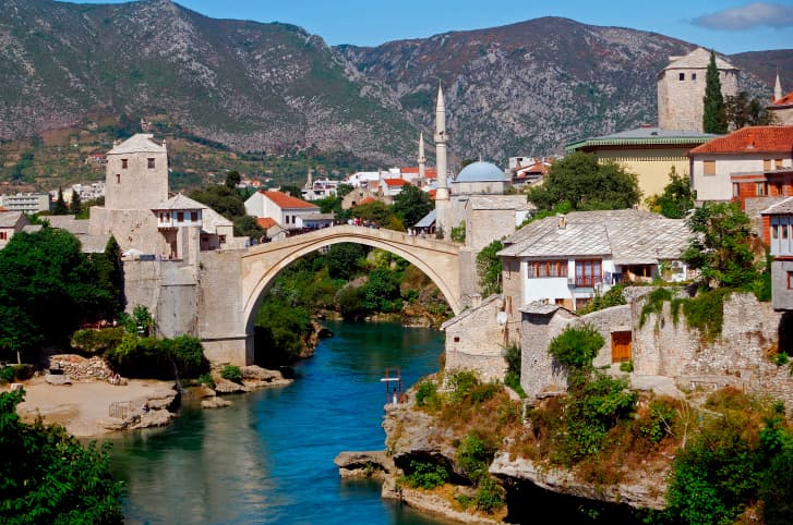 Mejor conocido como Stari Most, el Puente de Mostar fue construido en los siglos 15 y 16 durante el Imperio Otomano y conecta ambas partes de la ciudad de Mostar, la cual es travesada por el Río Neretva. En 1993 fue destruido durante un conflicto bélico, pero en 2004 fue levantado de nuevo. Es uno de los orgullos de Bosnia Herzegovina.