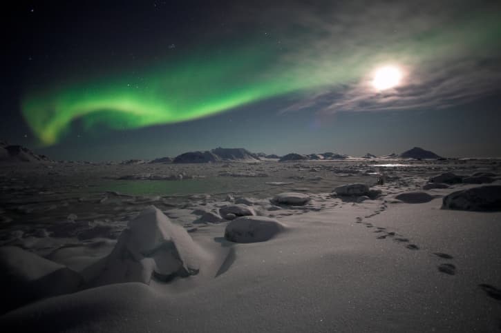 Las auroras boreales son luces fluorescentes que se divisan en el cielo oscuro nocturno de muchos países nórdicos, como Groenlandia. Si viajas en noviembre, o en cualquier fecha desde septiembre a abril, podrás ver auroras boreales en cualquier punto del país, siempre y cuando el cielo esté despejado y te encuentres lejos de luces artificiales.