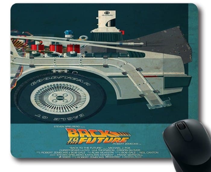 A falta de un coche que viaje al futuro, puedes tener un Mouse Pad con el famoso DeLorean de la película y con su motor a la vista, lo que nos lleva directamente a escenas de la trilogía