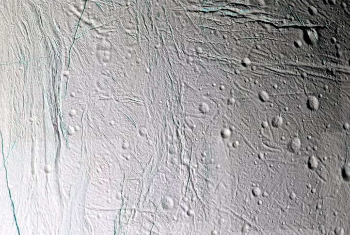 Encélado es el mismo caso de Europa. Posee una superficie helada, bajo la cual parece ocultarse un gran lecho marino. Pero hay acá una característica muy singular: a lo largo de esta corteza aparecen alrededor de 101 géiseres de hielo y vapor de agua brotando cerca de sus polos. Los científicos creen que podrán estudiar las propiedades de estas formaciones sin tener que taladrar el casquete de hielo.