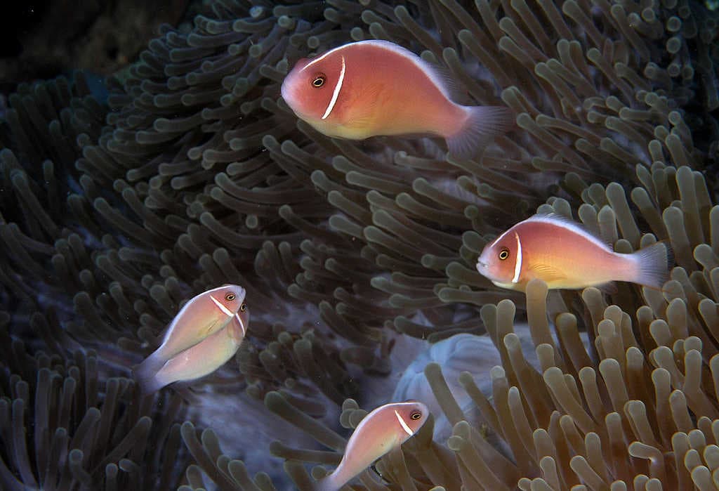 El pez payaso rosado, también conocido como pez payaso de Komodo ( Amphiprion perideraion) habita también en el Pacífico Occidental, aunque sus poblaciones se extienden también hasta la región más oriental del océano Índico, hasta las islas de Samoa y Tonga. Es uno de los habitantes estrella de la Gran Barrera de Coral de Australia. Son de hábitos diurnos y como es característico en los peces payaso, vive estrechamente asociado a las anémonas, con las que comparte una interesante relación simbiótica.