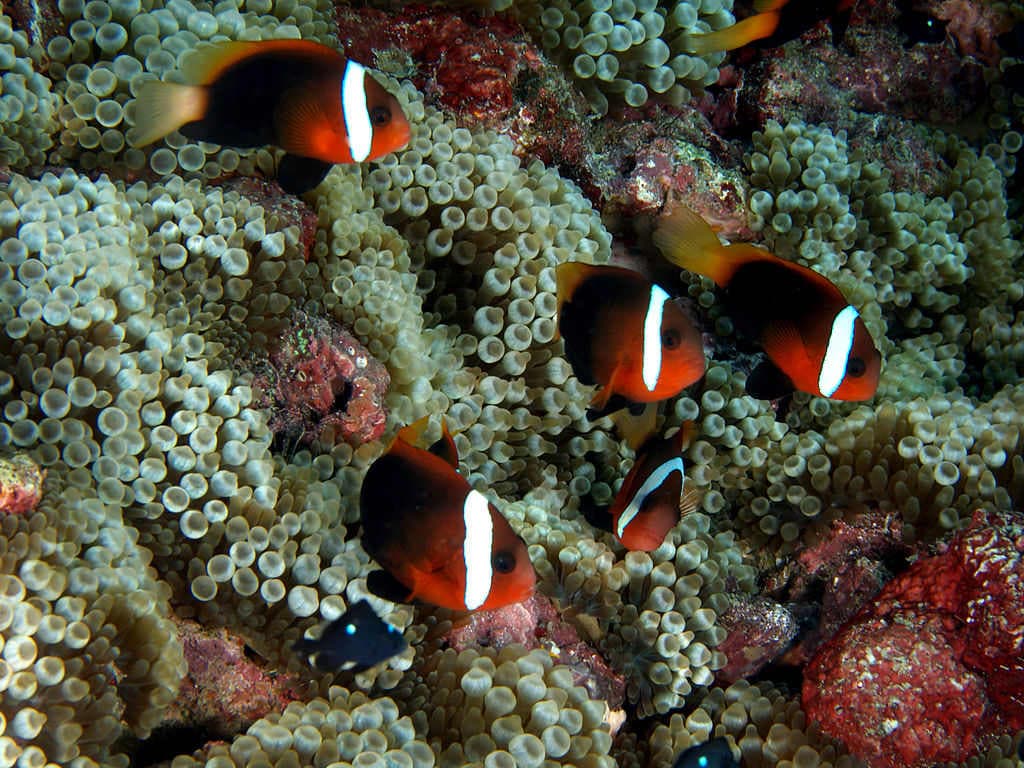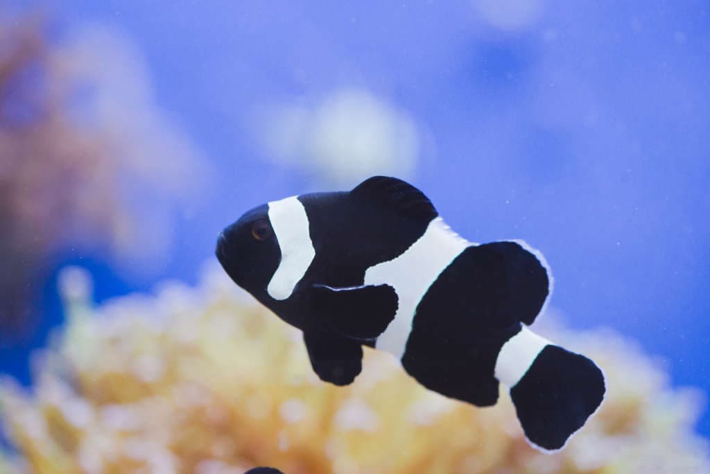 El pez payaso ocelado (Amphiprion ocellaris) es el conocido Nemo, y como recordarás, es comúnmente de color anaranjado intenso con bandas blancas. Sin embargo, como curiosidad te mostramos en la foto que en ocasiones estos pececillos pueden ser también totalmente negros con sus características bandas verticales. Estos peces se encuentran con regularidad entre los tentáculos venenosos de las anémonas, son hermafroditas, monógamos y habitan en una amplísima área que contempla los océanos Índico y Pacífico. Crecen unos 11 cm de largo. Son los peces más demandados por la acuariofilia marina en prácticamente todo el mundo.