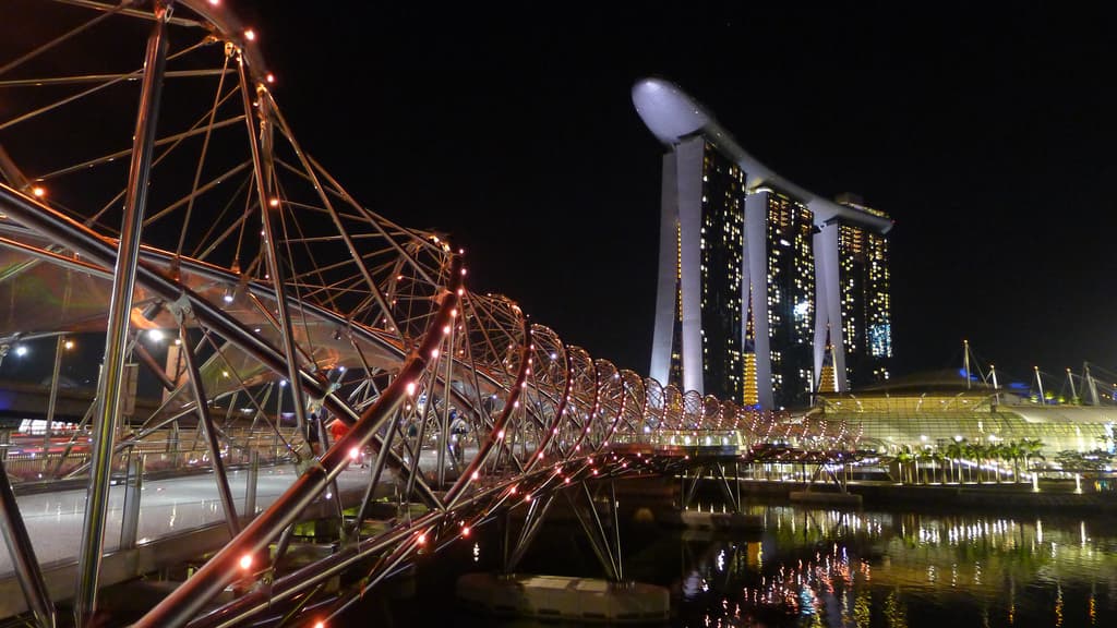 Se localiza en la Marina Bay y es un puente que a su vez se ha convertido en una maravilla de la arquitectura nacional, maravilloso para tomarse cientos de fotos a diversas horas del día. Está ubicado en la plataforma flotante y fue formado por dos hélices de hierro con un largo de 2250 metros. En la noche, una función de luces, imperdible.