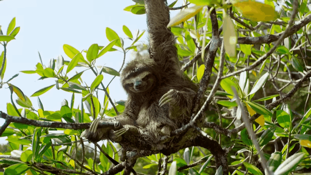 El perezoso es tan lento pero tan lento, que les da chance a las plantas que crezcan sobre su piel. Sin embargo, el musgo es beneficioso para el perezoso ya que el color verde le ayuda a mezclarse con los árboles, escondiéndolo de los depredadores.