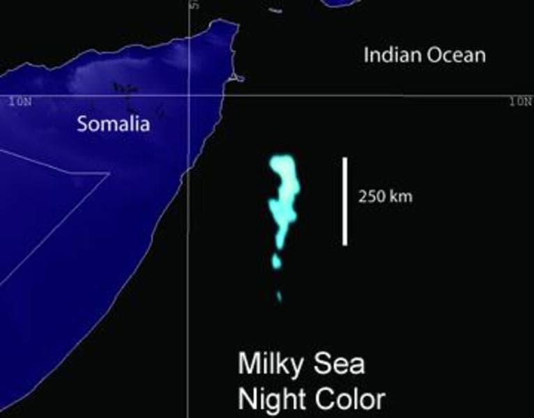 Comúnmente conocido como el Mar de ardora, este fenómeno tiene sus similitudes con la cuestión de la bioluminiscencia y en inglés suele llamarse “ milky seas”. Consiste en un efecto provocado por bacterias y otros organismos al proliferar. El resultado final es una peculiar e inmensa capa materializada de grandes masas de agua teñida en un color azul brillante y que puede apreciarse desde lejos. Julio Verne también habló de este curioso fenómeno oceánico en sus Vingt mille lieues sous les mers. Es de lo más maravilloso y como muestra la imagen, alcanza una longitud de unos 250 km de largo.