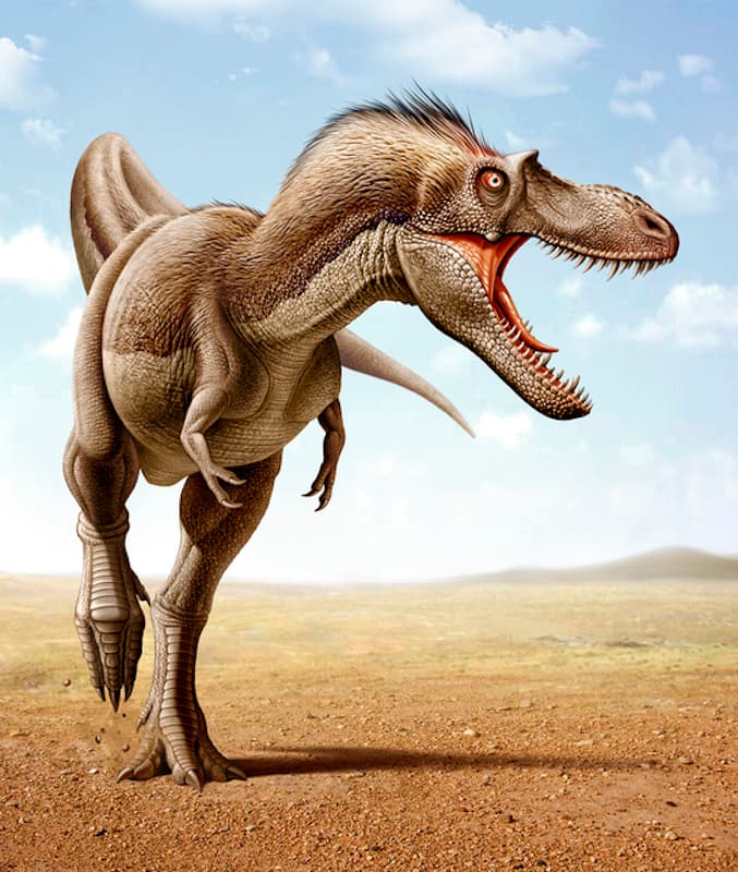 Perteneciente a la familia Tyrannosauridae, a la que también pertenece el Tyrannosaurus Rex. Tenía patas largas y pequeñas manos con dos dedos. Es el carnívoro de mayor tamaño encontrado en el país, con 8 metros de altura.