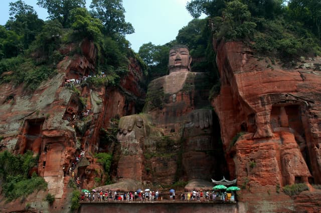 La arquitectura budista merecería una mención aparte dadas las muchas proezas alcanzadas en Asia mediante la elevación de estatuas y esculturas de proporciones totalmente increíbles. El mejor ejemplo es el Buda Gigante de Leshan, el cual yace en la provincia de Sichuan y fue construido en el siglo VI d. E. C., durante el reinado de la dinastia Tang. La escultura de Buda más alta del mundo (71 metros) yace sentada frente al monte Emei y entre sus pies fluyen los cauces de tres ríos diferentes: el Min Jiang, el Dadu y el Qingyi.