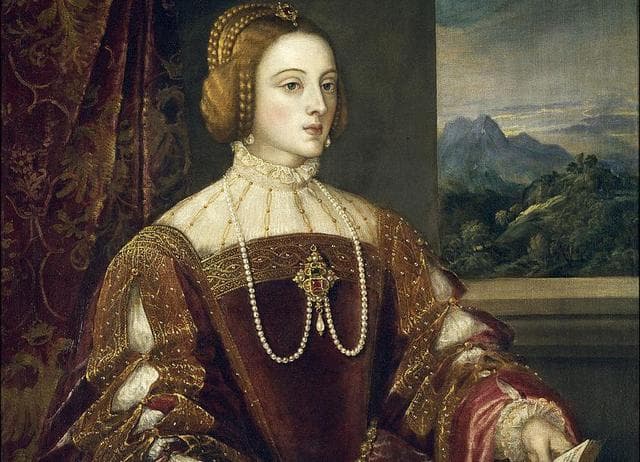 La boda de la futura madre de Felipe II con el rey Carlos I de España y V de Alemania fue por conveniencia política, aunque luego fueron una pareja feliz. El acontecimiento se celebró en el actual Salón de Embajadores del Alcázar de Sevilla. Lo más llamativo fue la dote. Varios sacos de monedas de oro con un peso de cerca de 25 kilos.