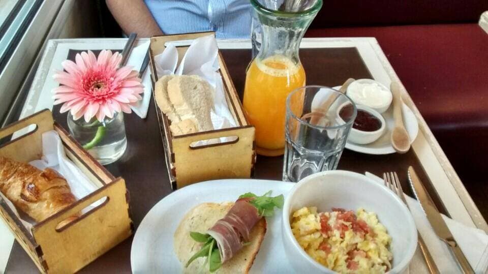 Recomendado iMujer: Probá el té para 2: Jugo de Naranja + Huevos revueltos con salmón ahumado + 1/2 bruschetta prosciutto + Croissant + Tostones de pan de campo + Queso crema y dulce de arándanos orgánicos + Crumble tibio de manzanas con crema $ 208.