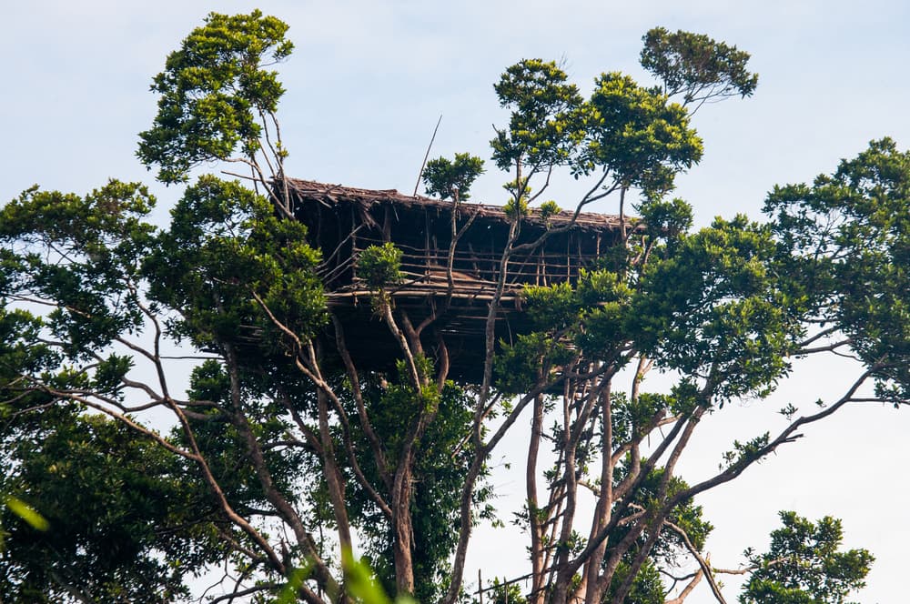 Estas personas son reconocidas por construir sus casas sobre los árboles, alcanzando los 12 metros de altura del suelo. Además, se encuentran en un territorio muy aislado del mundo. Su sociedad se suele organizar en torno a la fuerza, quienes son más fuertes tienen un estatus más alto en la estructura social.
