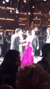 Mientras la señora de rosa piensa: Bueno, yo me sacrifico y bailo con el señor presidente.