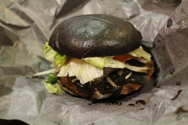 Burger King tuvo la extraña idea de agregar una hamburguesa negra a su menú de Japón. Está hecha con pimiento negro, mientras la salsa contiene tinta de calamar.
