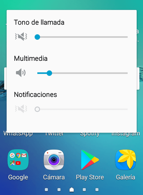 El volumen del ringtone si nada se reproduce, el volumen multimedia si se está reproduciendo algo o el volumen de la llamada durante una conversación.
