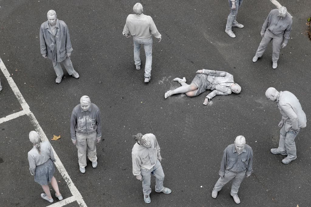 1000 personas completamente de gris transitaron por las calles en absoluto silencio.