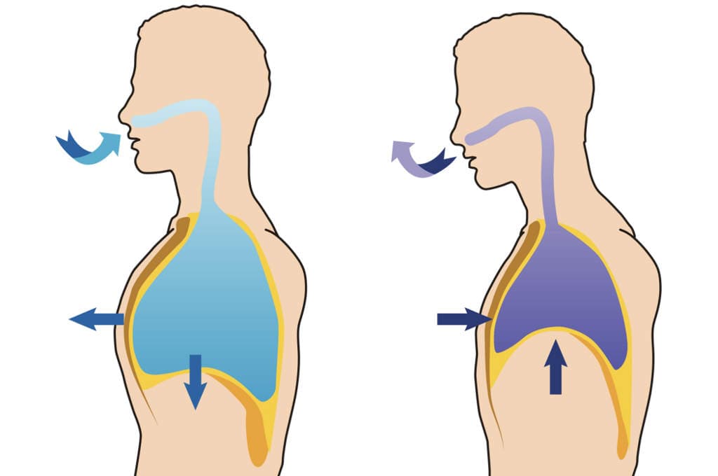 Es natural creer que el movimiento de nuestro pecho se corresponde con los pulmones llenándose y vaciándose de oxígeno. Y es así, pero lo que en realidad sucede es que el diafragma, que separa la cavidad abdominal de la pulmonar, se contrae y se desplaza hacia abajo al inhalar y lo contrario al exhalar. De esta manera, se libera más espacio para que los pulmones se llenen de aire.