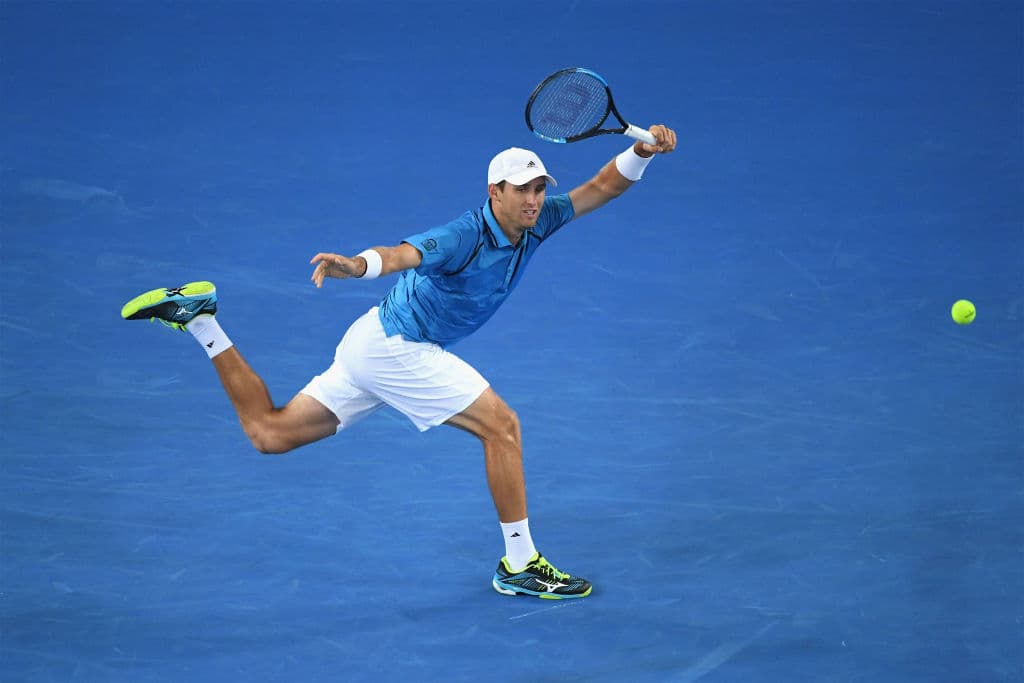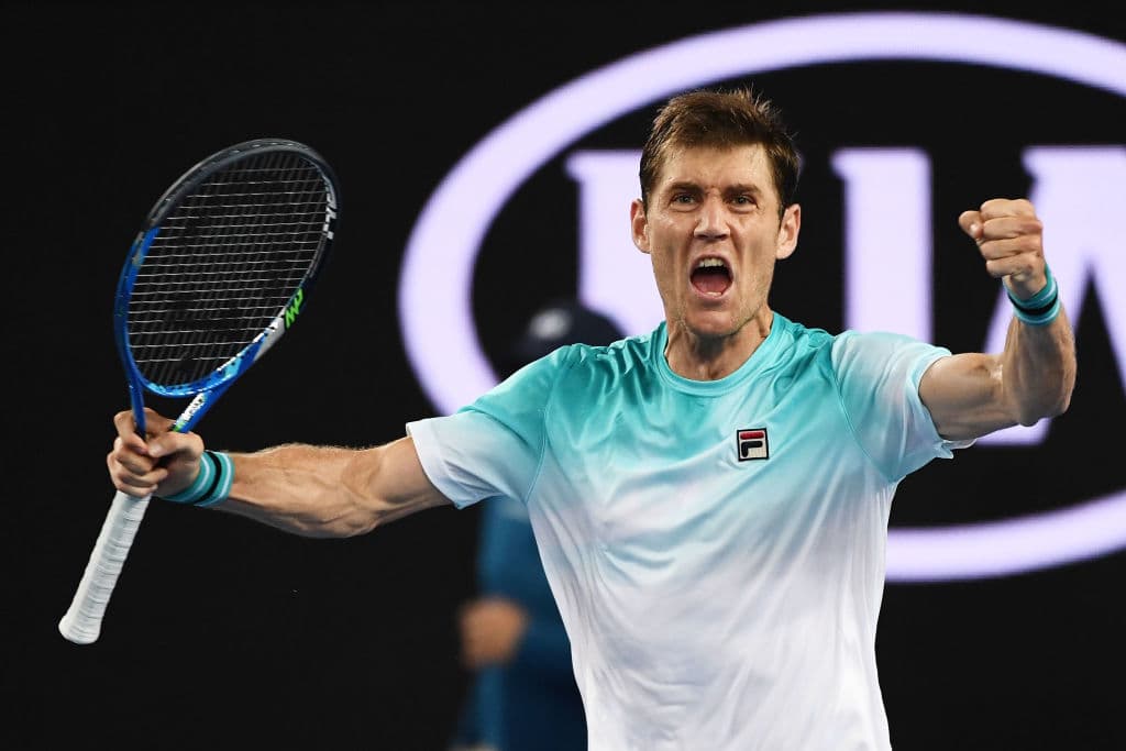 El festejo del australiano al ganar el primer round frente al estadounidense John Isner.