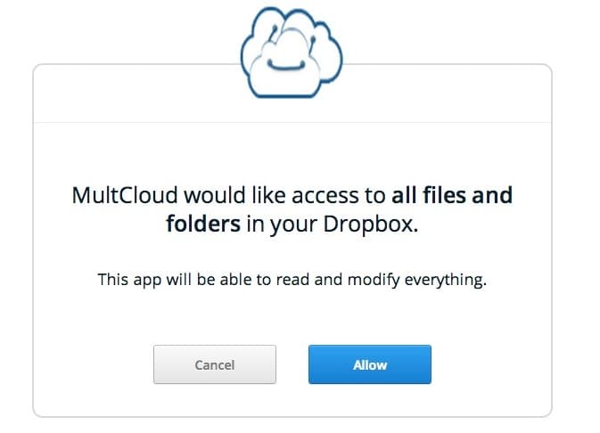 Haz clic sobre el icono del servicio a añadir y se te llevará a un sitio donde debes ingresar tus credenciales y, autorizar a MultCloud para que acceda a los contenidos allí almacenados.